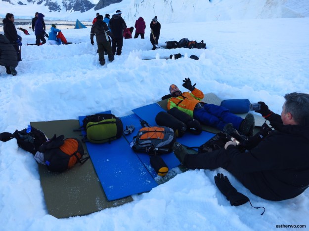Testing out the “beds” – they were actually pretty comfortable! (As long as you didn’t have a huge chunk of awkwardly-shaped ice under your mat